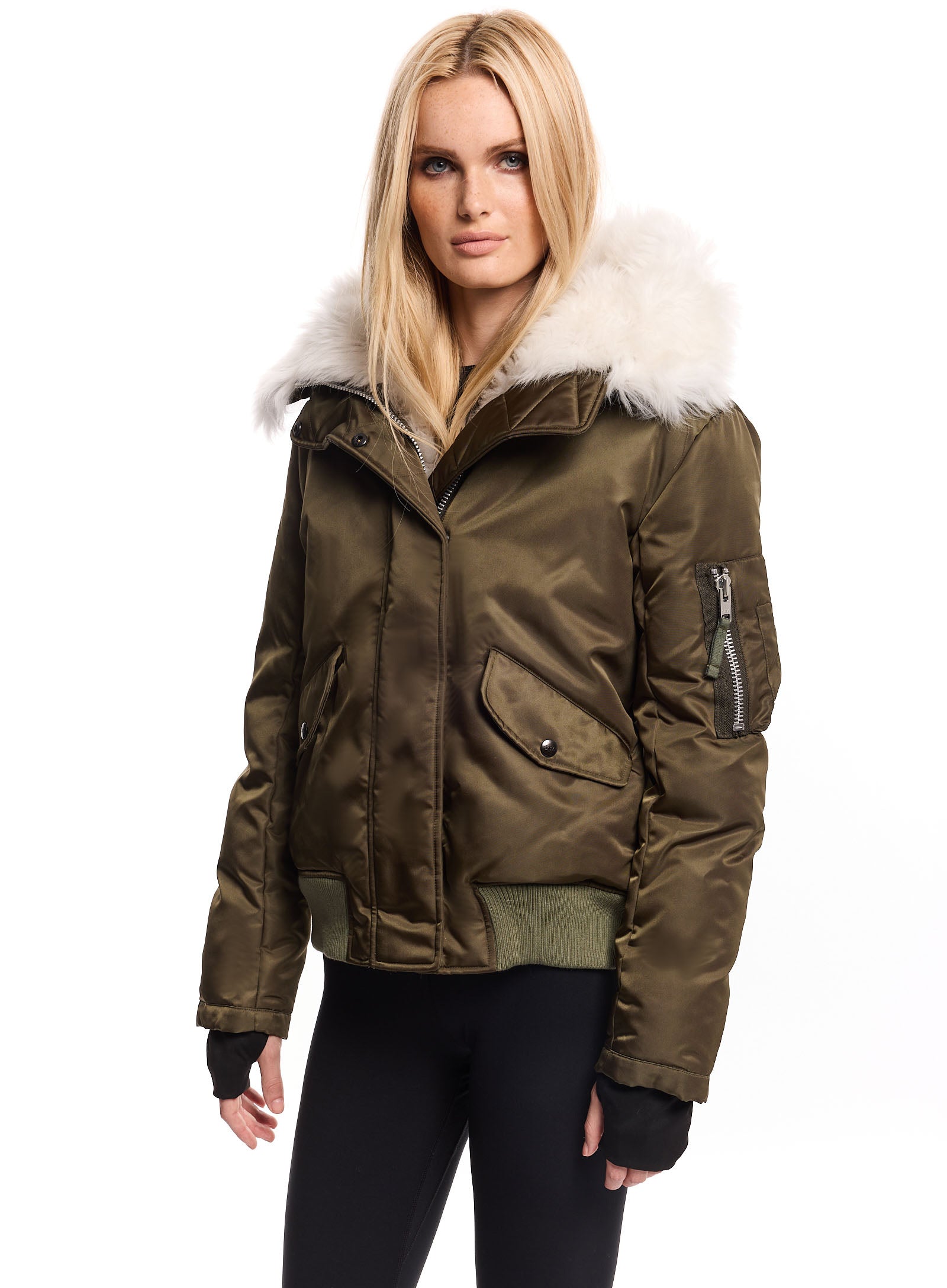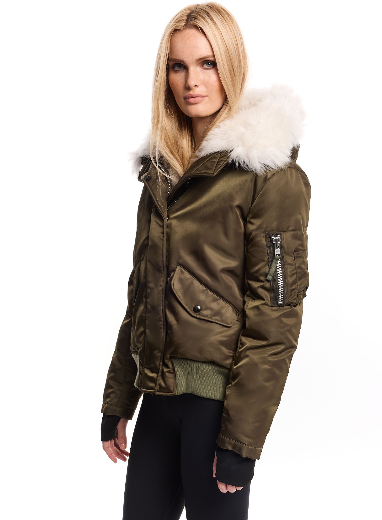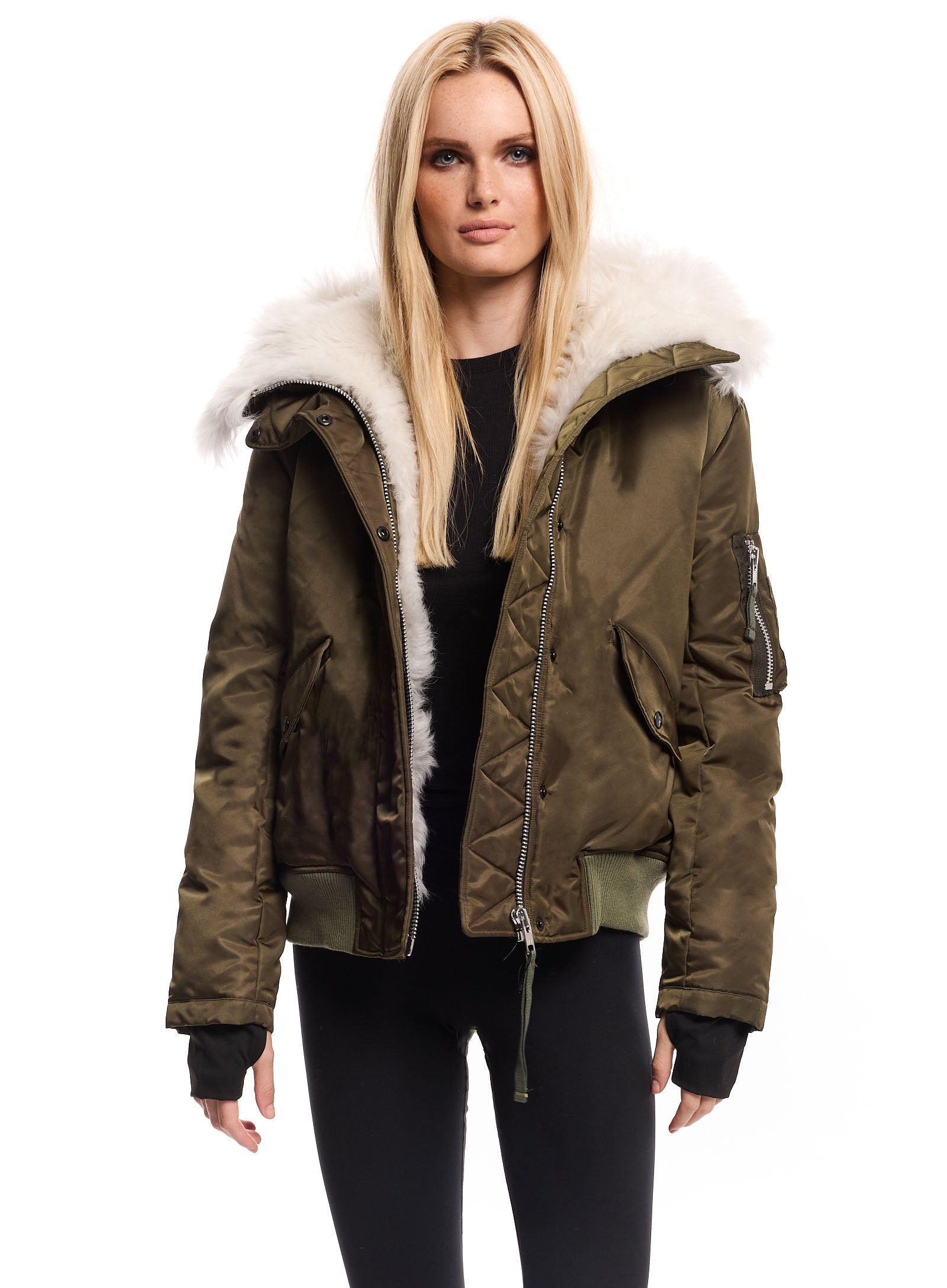 Experience the perfect blend of style and warmth with this luxurious bomber jacket, fully lined with plush shearling for unmatched insulation. The rich olive-green exterior and sleek, tailored fit create a modern, sophisticated look, while ribbed cuffs and hem seal in warmth. Functional details like zippered arm and side pockets offer practical storage for daily essentials. Ideal for chilly city streets or weekend getaways, this shearling-lined bomber is a timeless piece that combines rugged durability with refined style, making it an essential addition to any cold-weather wardrobe.